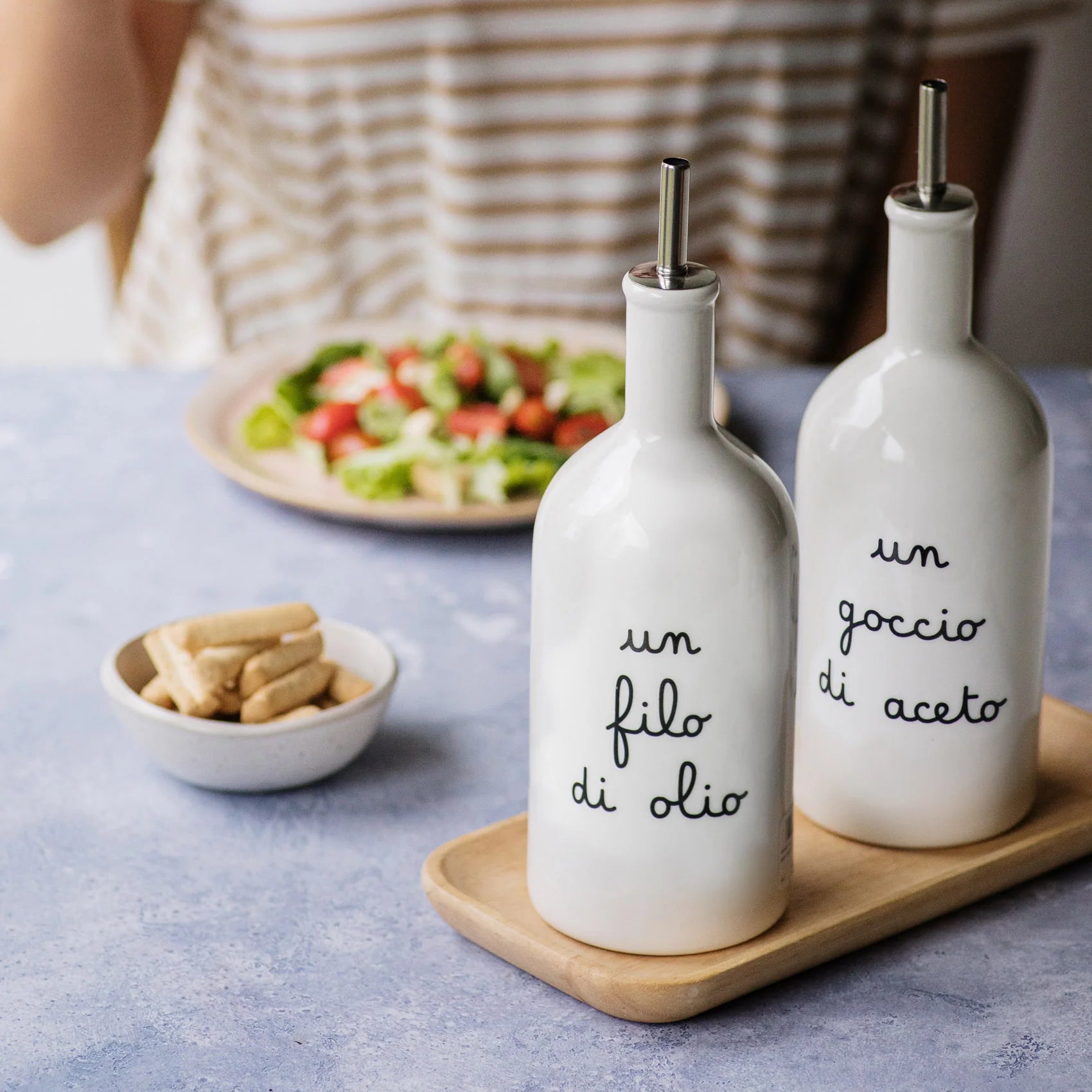 - La forma minimale e il decoro Un filo d'olio sono l'ideale per adattarsi sia sulle tavole più eleganti che su quelle di tutti i giorni. Può essere anche un'idea regalo essendo un accessorio utile in ogni cucina