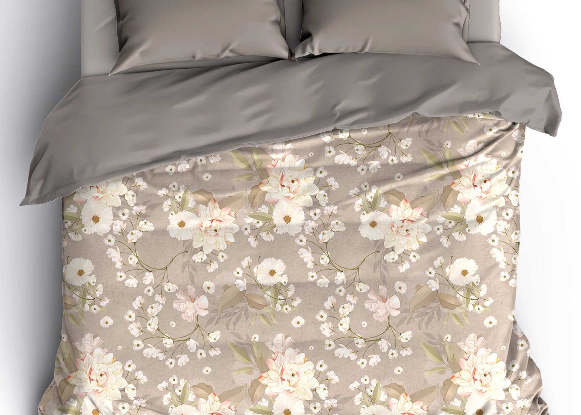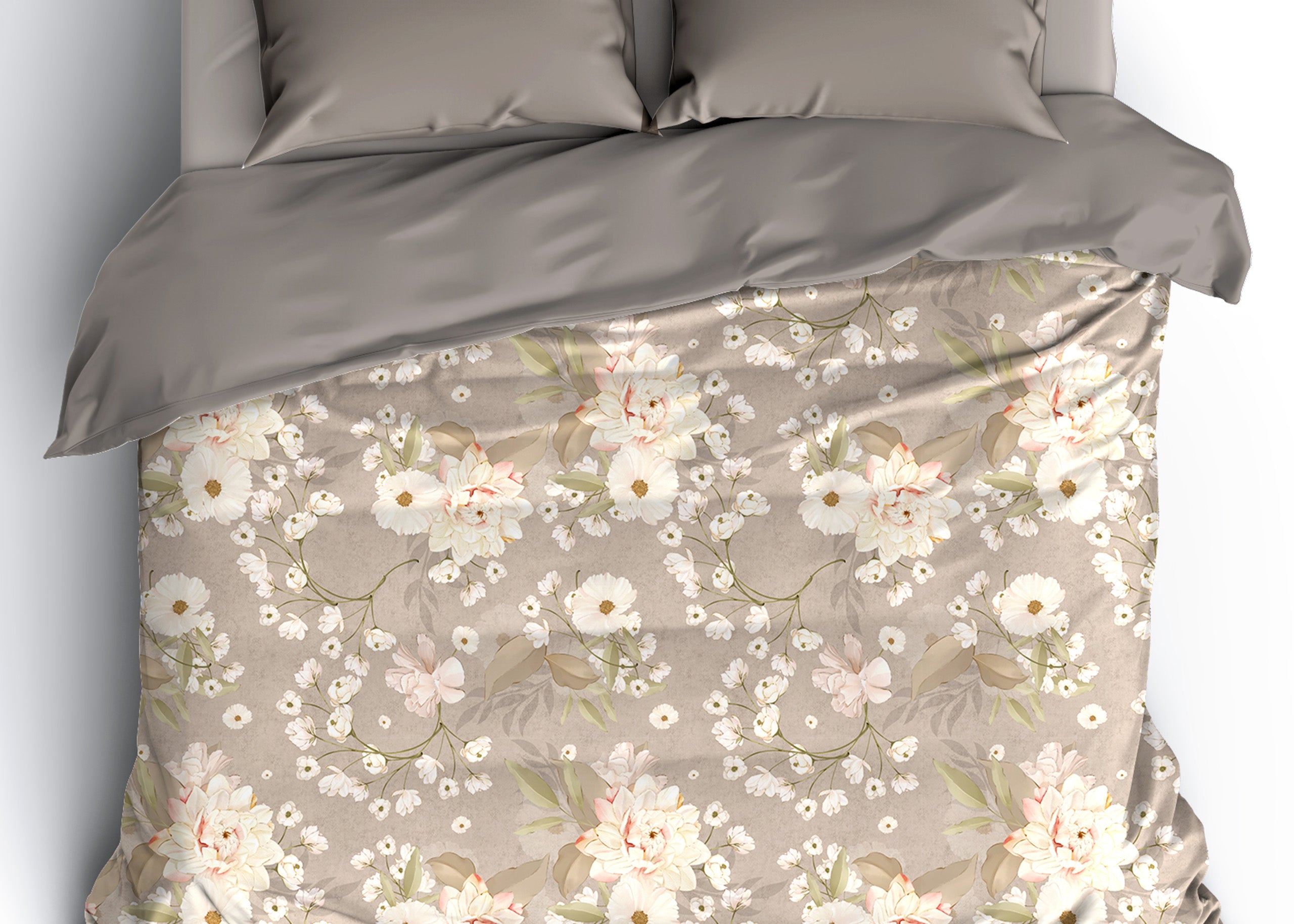Trapunta di velluto. Stampa digitale, packaging in borsa stampata di velluto. Retro Trapunta in tinta unita coordinata
