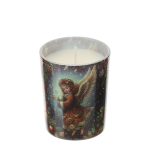 CANDELA CON PROFUMAZIONE OUD DA 70 GR. CONTENITORE IN VETRO CON DECORO DECALCO ANGELO