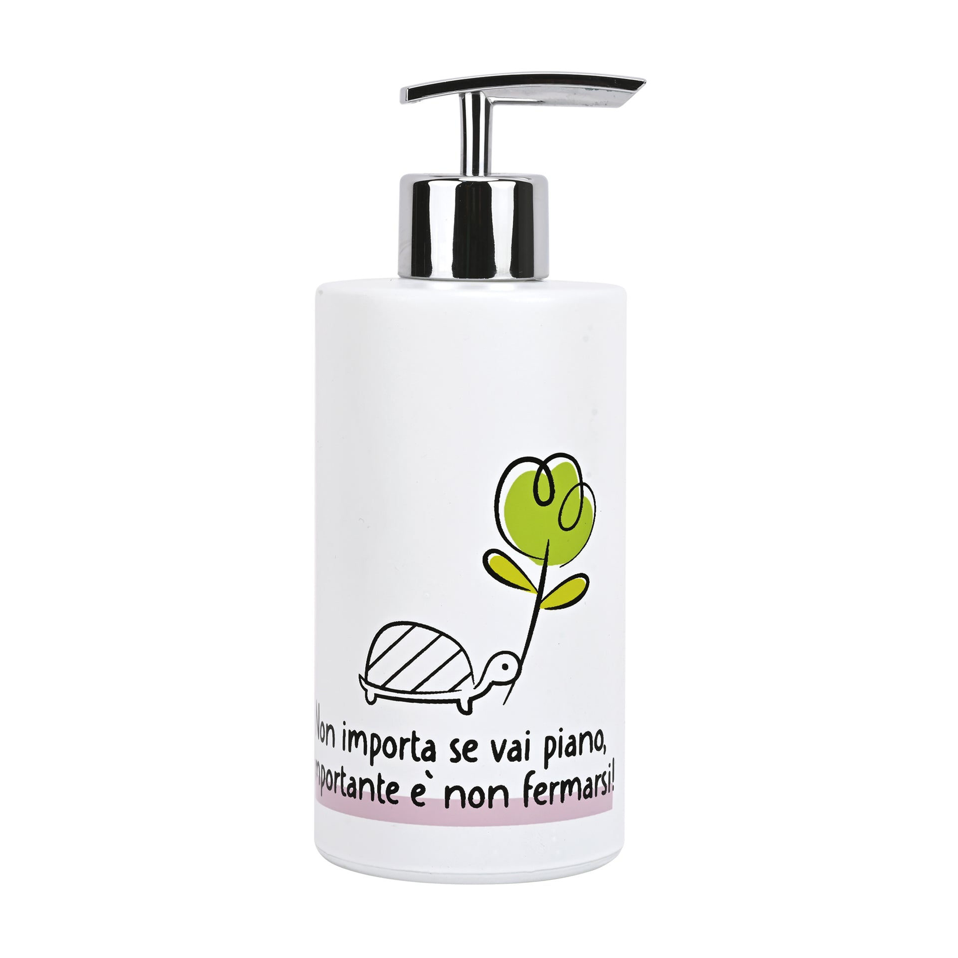 Dispenser in vetro da 350 ml con messaggio motivazionale "L'Importante è Non Fermarsi". Realizzato con materiali di qualità, questo dosasapone combina funzionalità e design elegante per il bagno contemporaneo. La capacità generosa garantisce un utilizzo prolungato, mentre il vetro trasparente consente di monitorare facilmente i livelli di sapone. Presentato in esclusiva gift box, rappresenta un regalo sofisticato e pratico per chi apprezza i dettagli curati e i messaggi ispiratori nel quotidiano.