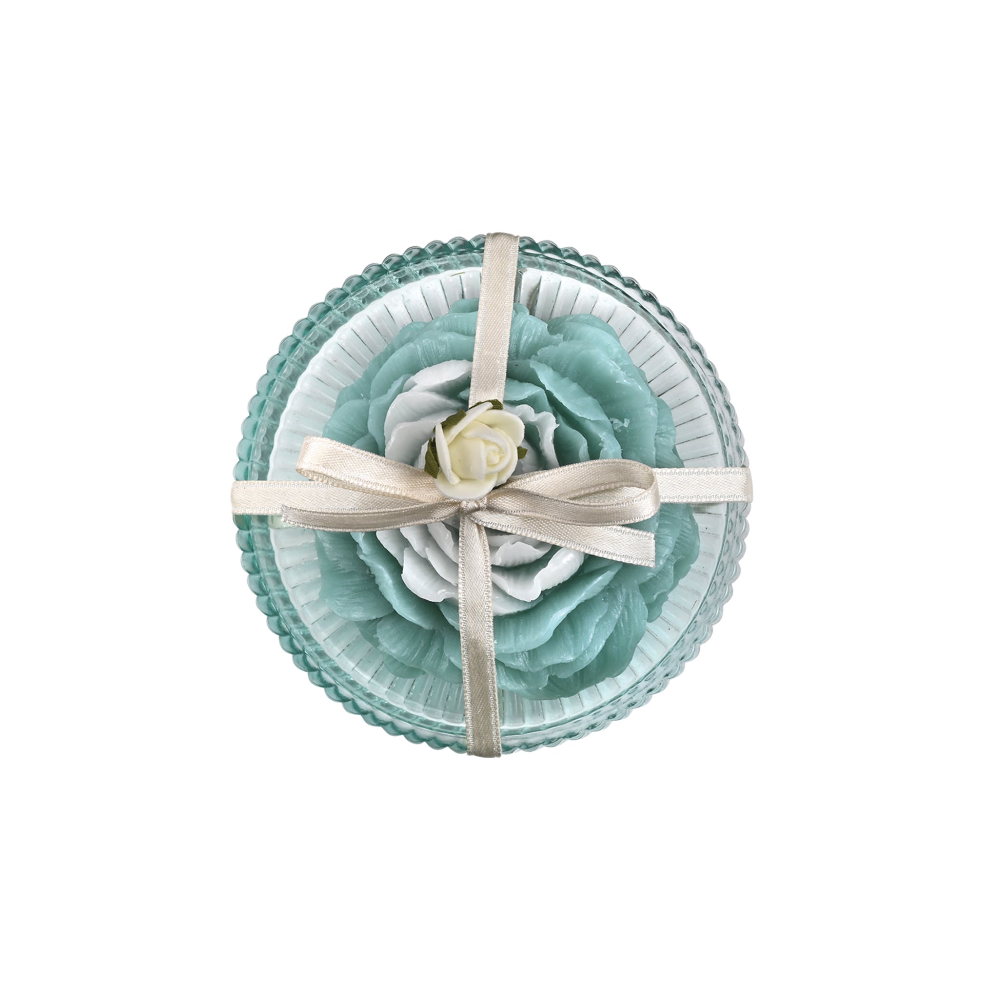 Elegante set regalo composto da un piattino in vetro dal diametro di 10 cm e un sapone profumato "Fiore" di 8 cm, entrambi nella tonalità verde acqua. Il piattino in vetro offre una superficie liscia e versatile, ideale per esporre il sapone o utilizzarlo come accessorio decorativo. Il sapone profumato, sapientemente realizzato, sprigiona un delicato profumo floreale. Presentato in una raffinata gift box, questo set rappresenta un dono sofisticato per chi apprezza i dettagli e la qualità. Perfetto per arricchire il bagno con stile e profumo.