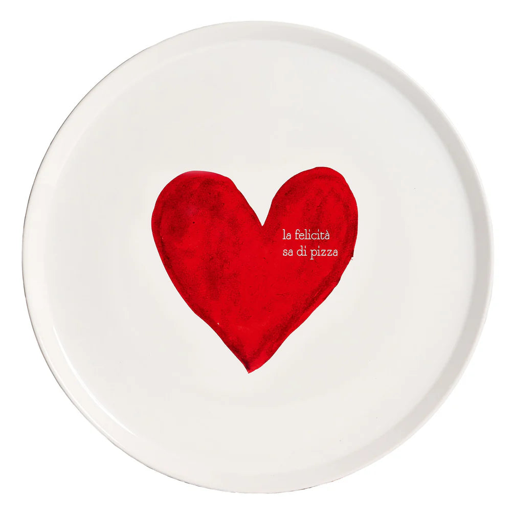 Piatto pizza in gres decoro La felicità sà di pizza 31,5 cm