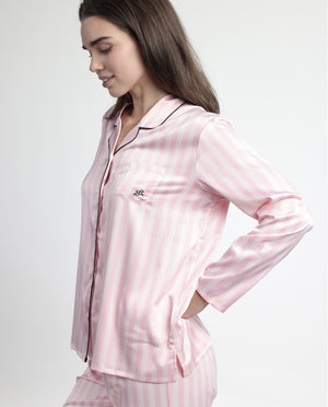 BARBIE Pigiama Barbie Elegante in Raso Aperto a Maniche Lunghe da Donna