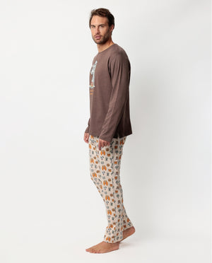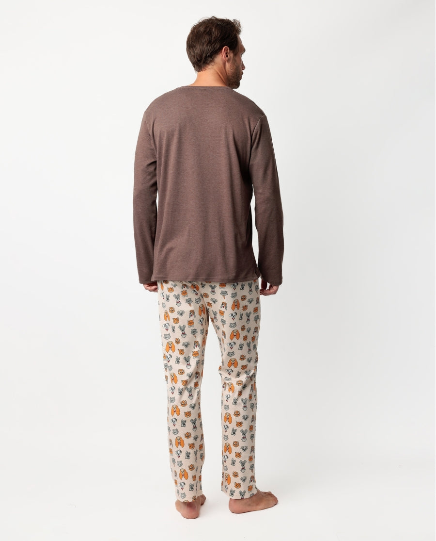 * Pigiama a maniche lunghe in maglia di cotone, scollo rotondo e pantaloni lunghi.