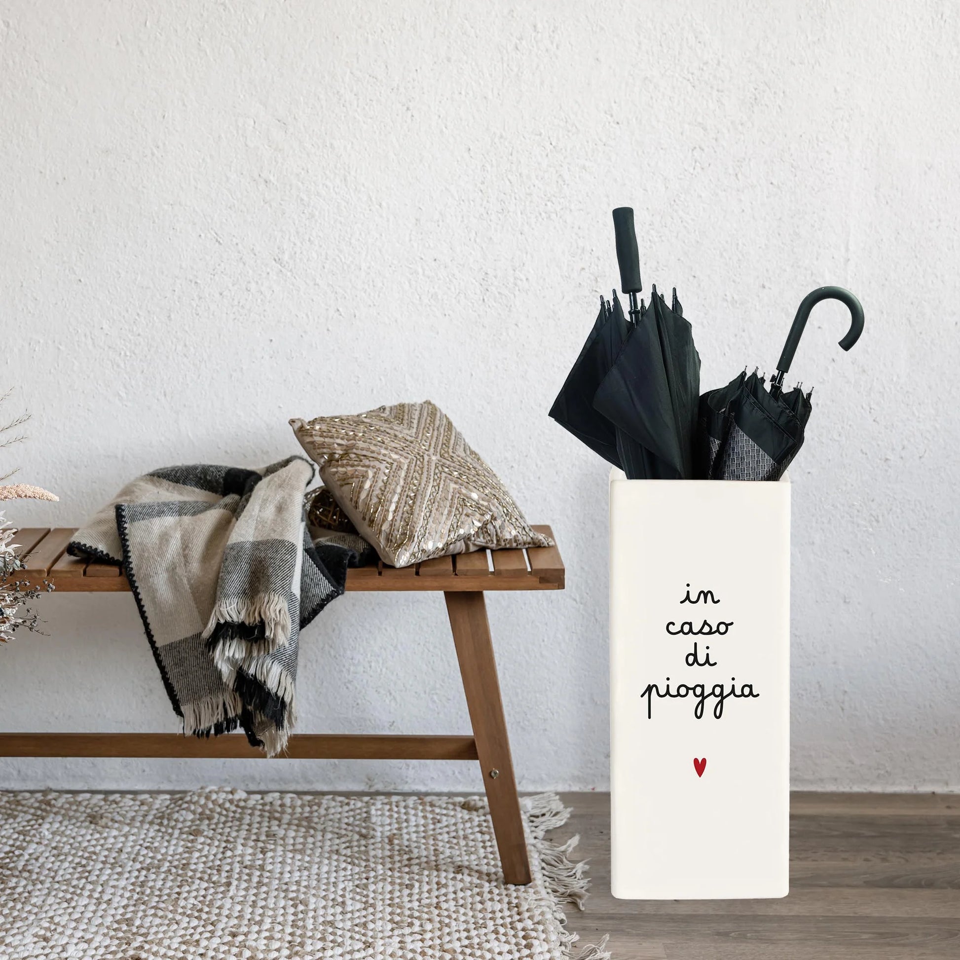 Porta-ombrelli in grès decoro In caso di pioggia - Dimensione: 22,5x22,5xh50 cm