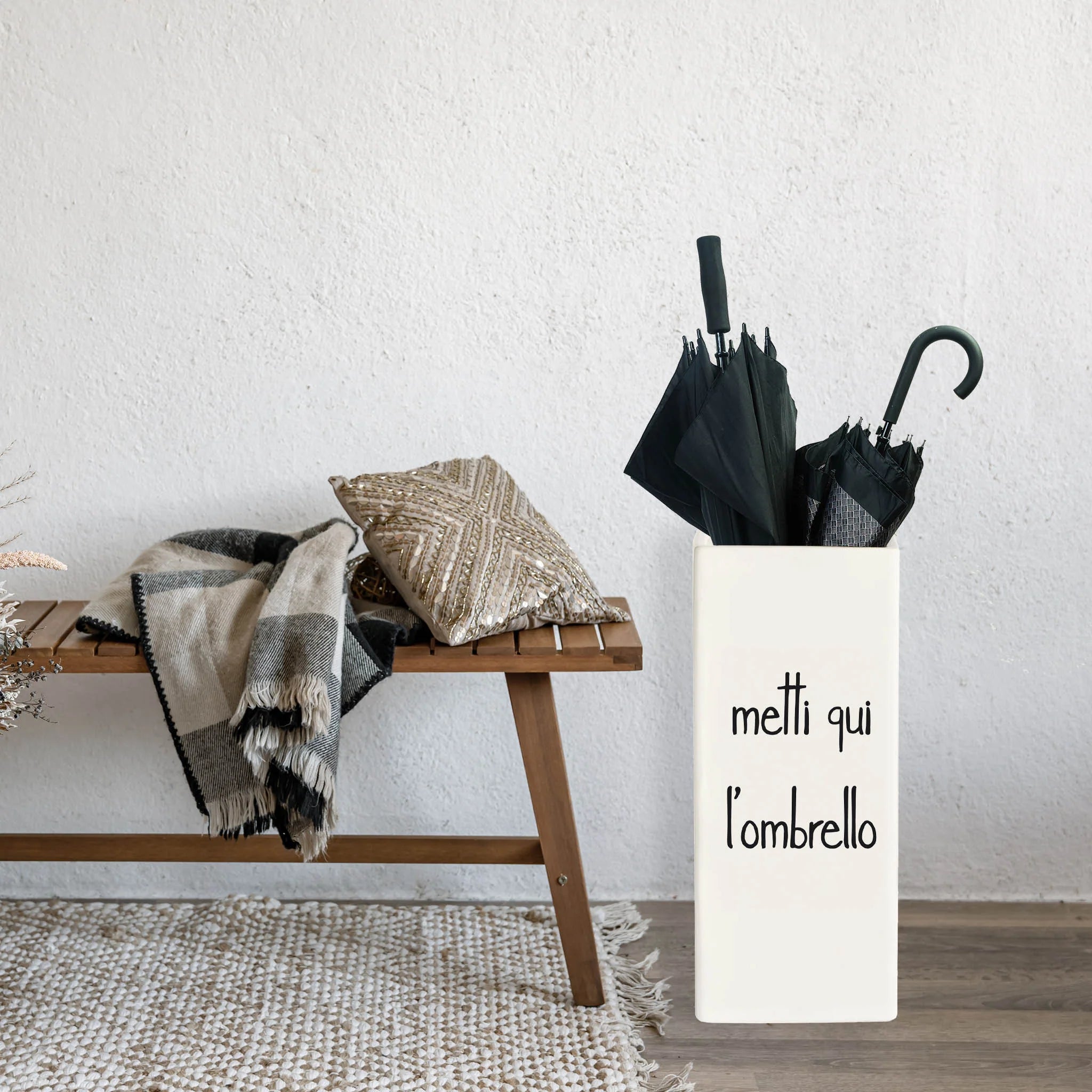 Porta-ombrelli in grès decoro Metti qui l'ombrello - Dimensione: 22,5x22,5xh50 cm
