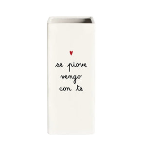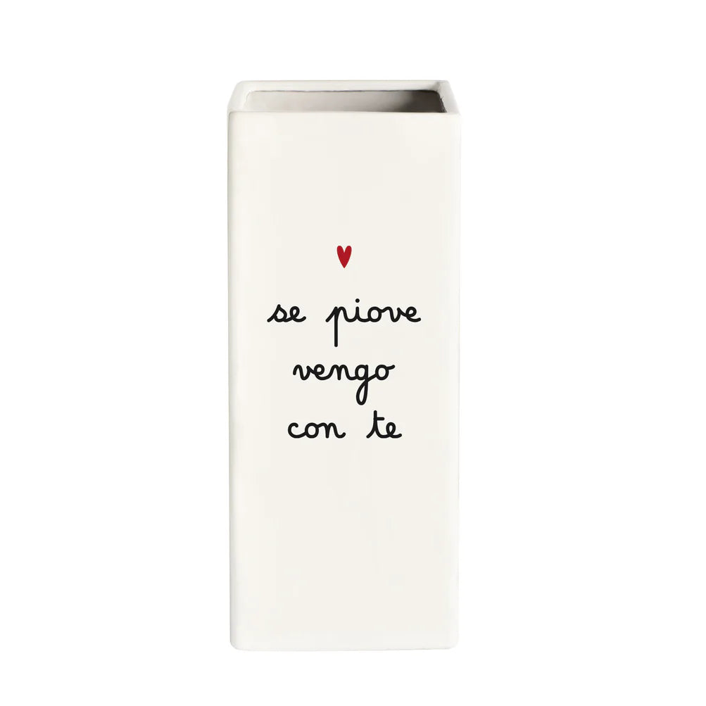 Porta-ombrelli in grès decoro Se piove vengo con te Dimensione: 22,5x22,5xh50 cm
