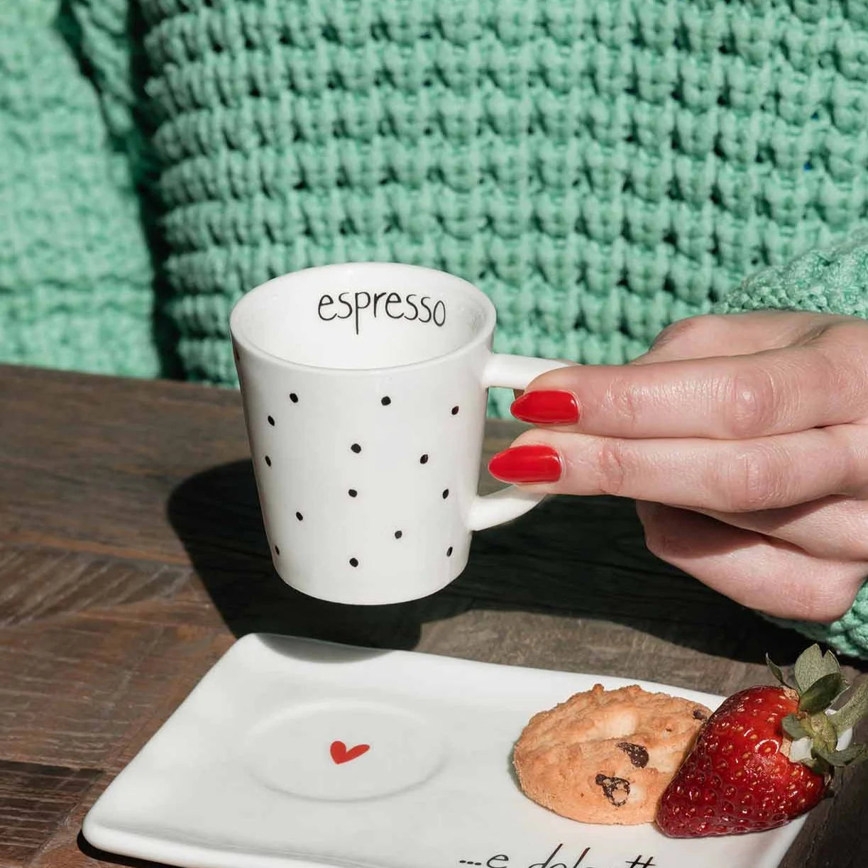 - La forma moderna e il decoro Pois espresso sulla tazzina di colore nero rendono le tazzine perfette sia per le case più classiche ed eleganti, sia nelle case più giovani e moderne