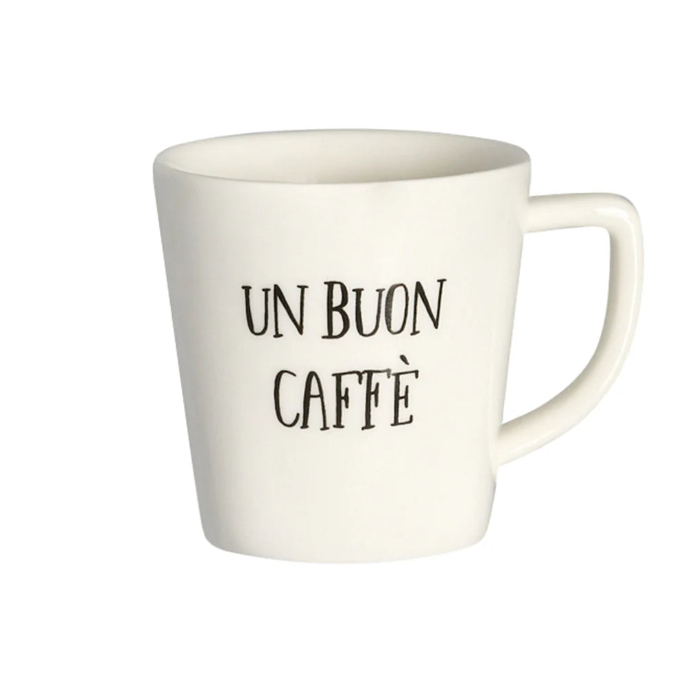 - La forma moderna e il decoro Un Buon Caffè sulla tazzina di colore nero rendono le tazzine perfette sia per le case più classiche ed eleganti, sia nelle case più giovani e moderne