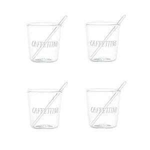 Set 4 bicchierini espresso in vetro borosilicato decoro Il caffettino in bianco