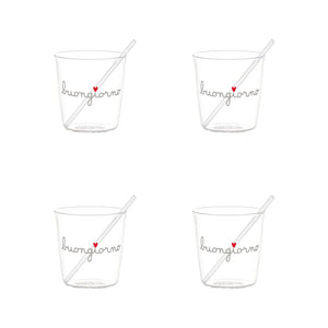 Set 4 bicchierini espresso in vetro borosilicato decoro Buongiorno in bianco