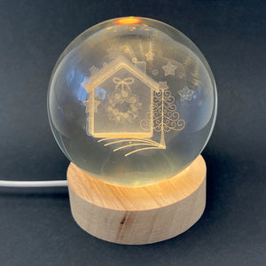 SFERE DI VETRO CON LED E BASE IN LEGNO + CAVO USB