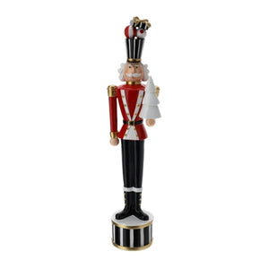 SOLDATINO SCHIACCIANOCI IN RESINA ROSSO/NERO SU TAMBURO CON ALBERO BIANCO