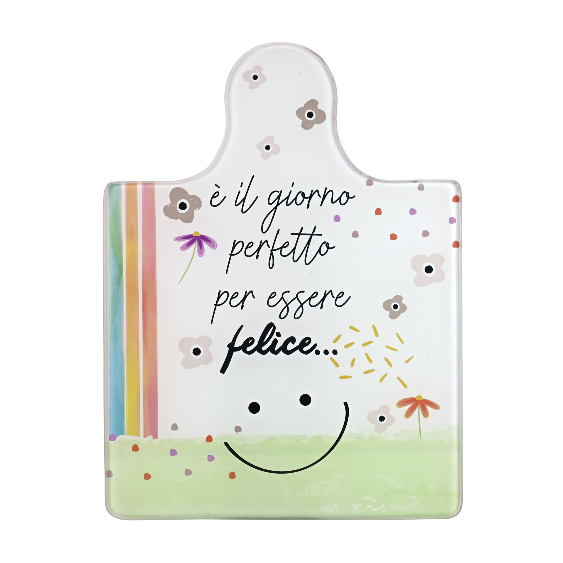 Sottopentola e tagliere in vetro temperato, dimensioni 18x24 cm. Realizzato con materiale resistente al calore e agli urti, ideale per proteggere i piani di lavoro durante la cottura e per preparare gli ingredienti con praticità. Il design "Il Giorno Perfetto" combina funzionalità e estetica, rendendolo un accessorio versatile in cucina. Perfetto come regalo, presentato in elegante confezione regalo. Facile da pulire e durevole nel tempo.