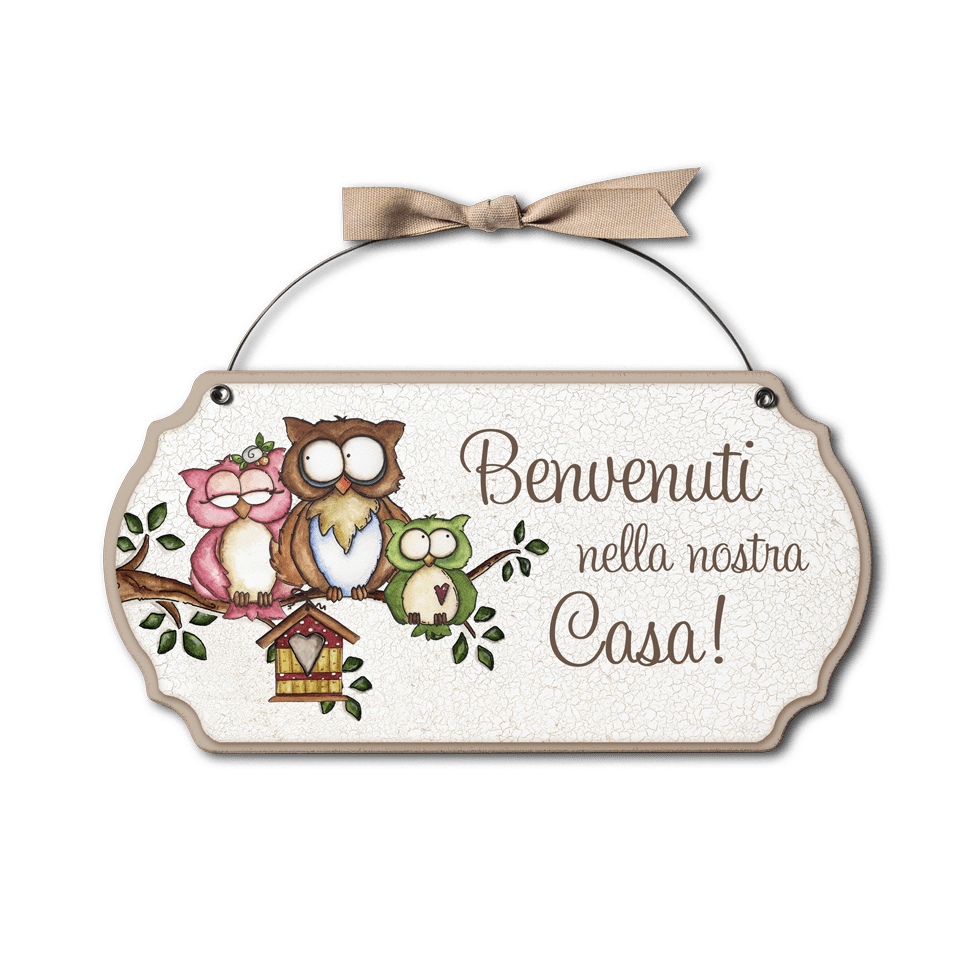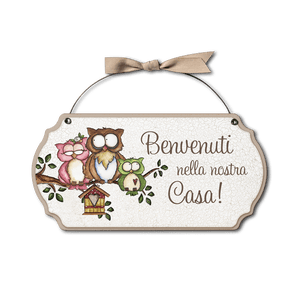 Targa con ferretto Allegri Gufetti – Benvenuti a casa