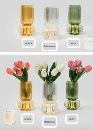 Vaso Lampada Led "Riflessi" AD Emozioni. Dimensioni: 10,5x19 cm. Disponibile nei colori: Trasparente, Ambra e Verde.