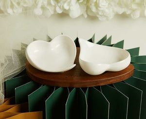 La collezione Claraluna 2026 unisce calore e raffinatezza in questa splendida bomboniera utile, composta da un elegante vassoio in legno di acacia dalle dimensioni di 19x10x1 cm, accompagnato da due ciotole in porcellana bianca da 9x8,5x3,5 cm ciascuna.