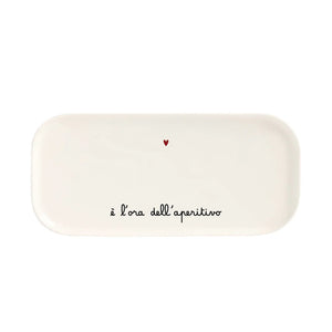 Vassoio rettangolare in gres decoro E' l'ora dell'aperitivo 31.8x15 cm