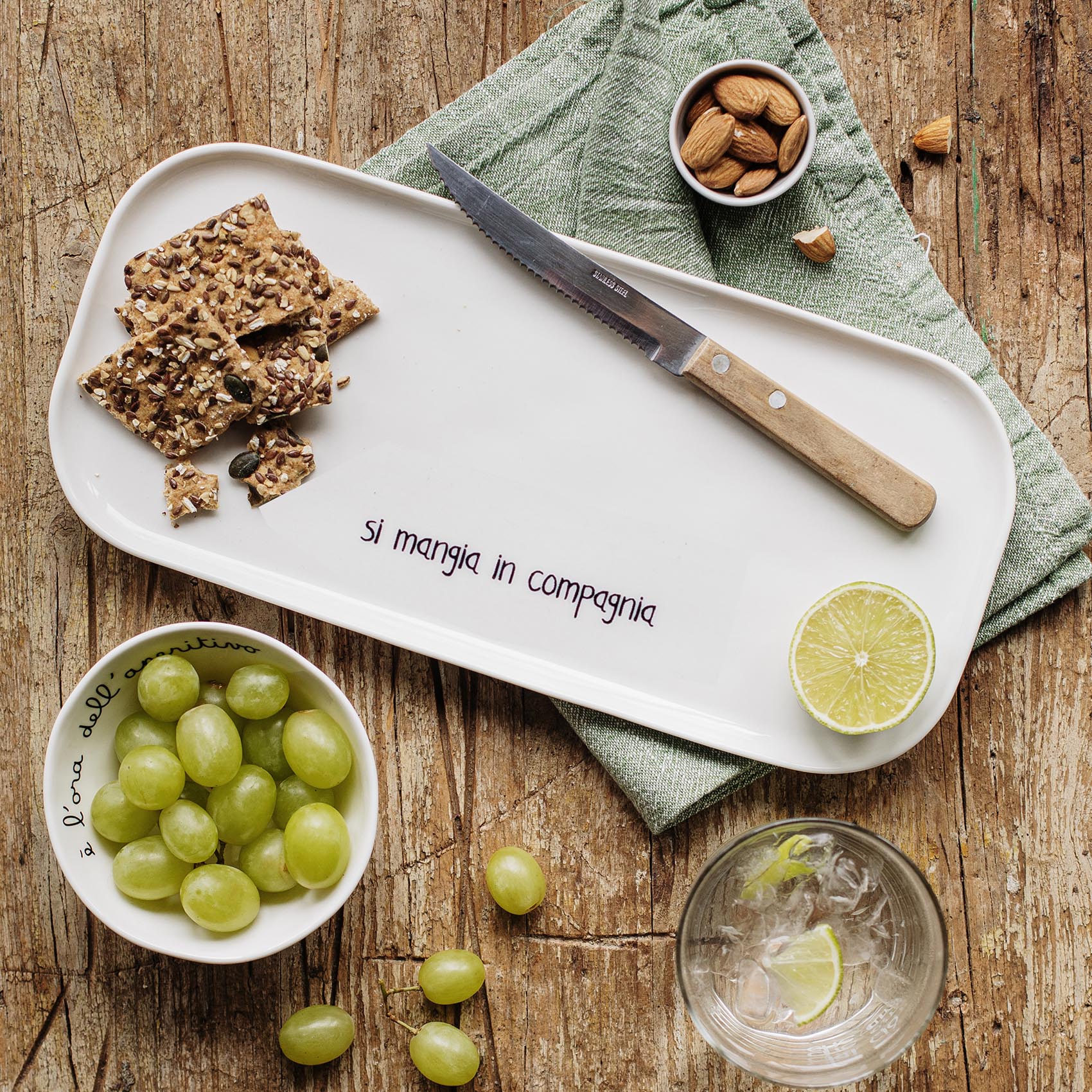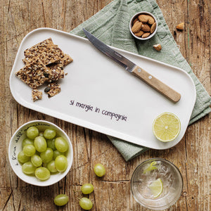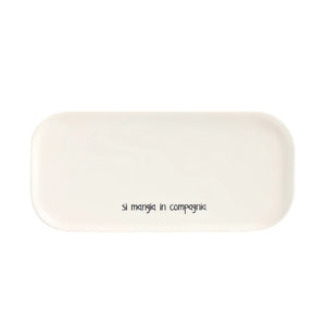 Vassoio rettangolare in gres decoro Si mangia in compagnia 31.8x15 cm